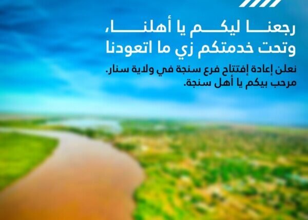وقال البنك على صفحته الرسمية في فيسبوك: بشرى سارة! لعملائنا الأعزاء في ولاية سنار، يطيب لنا إعلامكم بعودة فرع سنجة للعمل؛ اعتبارًا من اليوم الأحد الموافق 2 مارس 2025.