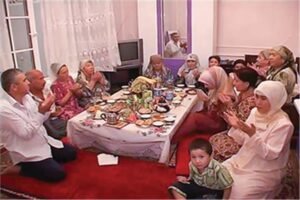 يتم تدريب النساء على تجويد القرآن كل صباح، كما لابد أن يتم تجديد أواني المطبخ احتفالا بقدوم الشهر الكريم، لكن أكثر ما هو غريب أن الإفطار يجب أن يكون جماعيا في ساحات واسعة حيث تجتمع كل الأسر في ساحة واحدة للإفطار معا.