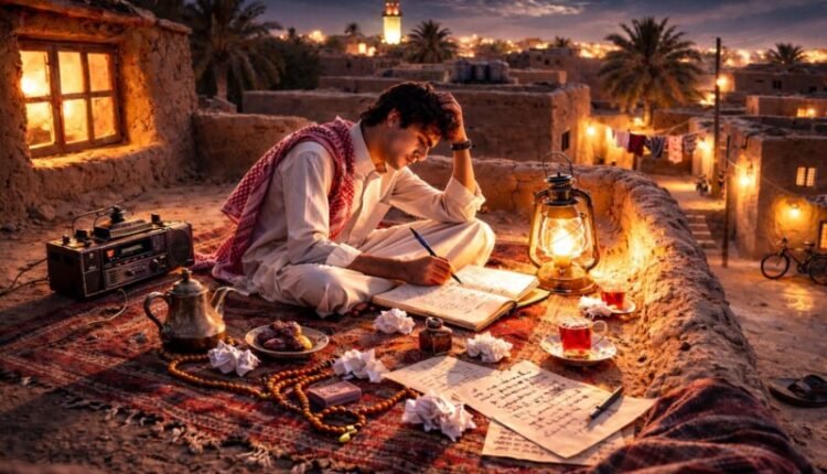 عاد حمود إلى البيت تلك الليلة، وشيطان الشعر يثير في رأسه ضجيجًا لا يشبه الضجيج. فتح دفتر “أبو عشرين”، ذلك الدفتر الذي كان يحفظ فيه قصائده، وجلس يكتب. خرج منه بيتٌ وحيدٌ ويتيم، كما لو أنه أثرٌ أخير لذلك الارتباك الجميل: