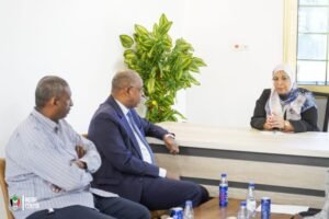 استقبلت الأستاذة لمياء عبد الغفار، وزير شؤون مجلس الوزراء مطلع الاسبوع الحالي رئيس الاتحاد السوداني لكرة القدم، الدكتور معتصم جعفر سر الختم، يرافقه النائب الأول لرئيس الاتحاد ورئيس لجنة المنتخبات الوطنية الدكتور أسامة عطا المنان، ونائب رئيس الاتحاد رئيس لجنة الاستثمار والتسويق والتلفزة، الأستاذ سيف الدين الطيب، ومقرر لجنة الاستئنافات المستشار الزين الدخيرى