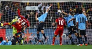 وجاءت مواجهة ربع النهائي أمام الأوروجواي مليئة بالمد والجزر. تقدمت غانا قبيل نهاية الشوط الأول بتسديدة صاروخية من مسافة 40 مترا أطلقها سولي مونتاري. وردّت الأوروجواي في الشوط الثاني، مستفيدة من تقلبات كرة “جابولاني”، عندما حيّرت ركلة حرة نفذها دييجو فورلان حارس غانا ريتشارد كينجسون، بعدما انحرفت بعنف في الهواء.