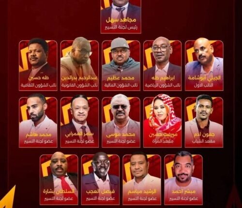 وكشفت اللجنة عن تشكيل لجنة التسيير الجديدة برئاسة المهندس مجاهد عبدالله سهل، وعضوية عدد من الشخصيات الإدارية والرياضية، حيث ضمت اللجنة المهندس الجيلي تاج الدين أبو شام نائباً أول، واللواء إبراهيم طه نائباً للرئيس للشؤون الرياضية، واللواء حقوقي عبدالرحيم بدر الدين نائباً للرئيس للشؤون الإدارية والقانونية، واللواء طيار محمد عظيم النور نائباً للرئيس للشؤون المالية والاستثمار، والدكتور طه حسين نائباً للرئيس للشؤون الثقافية والاجتماعية.