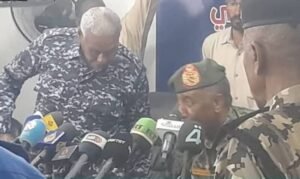 انضم رئيس مجلس السيادة، القائد العام للجيش، الفريق أول ركن عبد الفتاح البرهان، بشكل مفاجئ لمؤتمر صحفي معلن مسبقا لوزير الداخلية بابكر سمرة، أمس الأربعاء بمقر الوزارة بالخرطوم، وسط دهشة مسؤولي الوزارة والصحفيين.