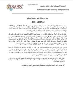 الجمعية السودانية لعلوم الفلك والفضاء تحدد  أول أيام شهر رمضان