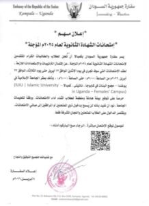 تنويه عاجل من سفارة السودان بيوغندا لطلاب الشهادة السودانية