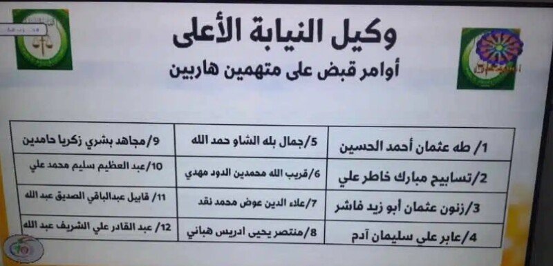 أمر قبض في مواجهة 28 متهم ابرزهم الفريق طه وتسابيح خاطر ومجاهد بشرى
