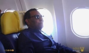 رئيس الوزراء كامل إدريس داخل طائرة سودانير في طريقة من الخرطوم لبورتسودان