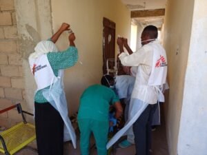 في إحدى المراحل، وقف الأطباء والممرضات بجانب المرضى وهم يمسكون بأكياس السوائل الوريدية يدويًا بسبب نقص حوامل المحاليل، وفي الوقت نفسه، شارك طاقم أطباء بلا حدود غير الطبي، وموظفو وزارة الصحة، وحتى مقدمو الرعاية، في تقديم المساعدة من خلال توزيع أملاح معالجة الجفاف الفموية (ORS) لإنقاذ حياة المرضى.