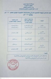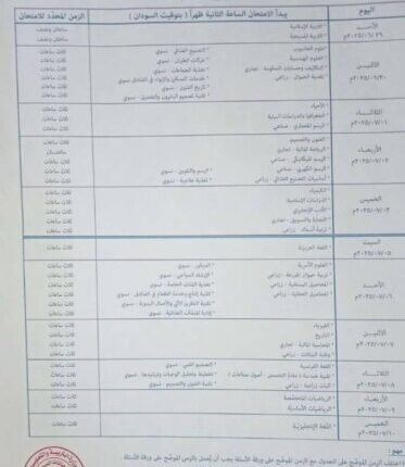 (أصداء سودانية) تنشر جدول امتحانات الشهادة (المؤجلة)