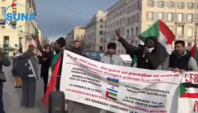 نظم سودانيون مقيمون في دول أوروبية وقفة احتجاجية في مدينة مارسيليا الفرنسية بمناسبة مرور 1000 يوم على بداية الحرب في السودان، واحتجاجا على صمت المجتمع الدولي إزاء ممارسات وانتهاكات مليشيا الدعم السريع المتمردة في حق المواطنين.
