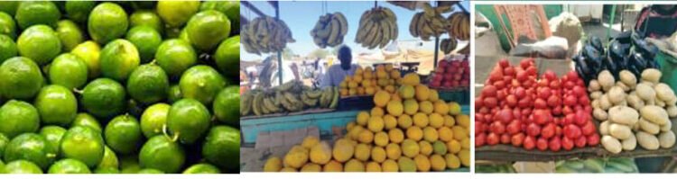 سعر كيلو السكر (3.200)، رطل الشاي (7.500)، كيلو العدس (4.000)، ملوه البلح (10,000 ــ 22.000)، رطل الكركدي (6.000)، البصل (12.000 ــ 14.000) للكيلة، جوال الفحم الكبير (55.000)، جوال الفحم الصغير (33.000)، ظرف العصير (3.500)، كيلة العدسية (45 ــ 56) ألف، العرديب (8.000)، الفول (5.000)، الكبكبي (10.000)، رطل اللبن (1500)، جوال الدقيق (25) كيلو يباع بمبلغ (53.000)، دستة البرتقال في حدود (3.000 ــ 5.000) للدستة، الطماطم (1.000) والتي إنخفض سعرها إلى (1000) جنيه للكيلو لكن زميلتها (الدكوة) سجلت إرتفاعا كبيرا، جنيه للكيلو، اما الليمون فقد صدق فيه القول: “قام إتعزز الليمون” فالخمسة حبات تباع بمبلغ (1000) جنيه.