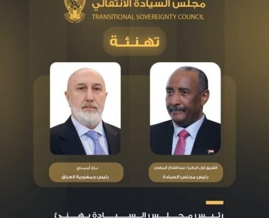 بعث رئيس مجلس السيادة الانتقالي، القائد العام للقوات المسلحة، الفريق أول الركن عبد الفتاح البرهان، برقية تهنئة إلى فخامة الرئيس نزار آميدي، بمناسبة انتخابه رئيساً لجمهورية العراق الشقيقة.