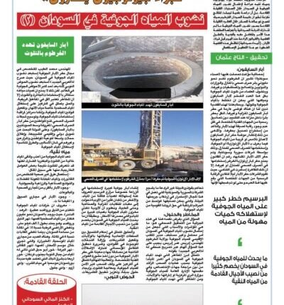 تحقيق صحفي إستقصائي من 3 حلقات نشرتة (أصداء سودانية) تحت عنوان: (خبراء جيولوجيون يحذرون من نضوب المياه الجوفية في السودان عام 2060).. وكشف التحقيق من خلال حلقته الثانية المنشورة الأربعاء 15 أكتوبر لماضي تحت عنوان: (آبار السايفون تهدد الخرطوم بالتلوث)، وجود أكثر من مليوني بئر صرف صحي بالمنازل والمؤسسات الحكومية والمستشفيات وغيرها، أصبحت تهدد المياه الجوفية بالتلوث، خاصة الآبار الجوفية التي تحفر بالآلات بواسطة بعض الشركات العربية والمحلية داخل وامام المنازل بالعاصمة الخرطوم، بجانب حفر مئات الآبار الإرتوازية لإستخدامها في أعمال الري لبعض المشاريع الزراعية.. وأشار التحقيق ان هذه السحب من المياه الجوفية دون تصديق من الجهات المختصة سوف يتسبب في تقلص نصيب الأجيال القادمة من حصتها في المياه الجوفية مستقبلا.. ونبه التحقيق الصحفي الجهات المختصة بالدولة حسم هذه الفوضى المائية ونزيف المياه الجوفية وإحتمال تلوثها بآبار الصرف الصحي المنزلية بالعاصمة الخرطوم.