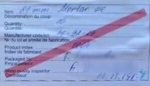 تمكن فريق تحرير مراقبون فرانس 24 من الحصول على وثيقة مرتبطة بعملية شراء قذائف هاون من صنع بلغاريا التي عثر عليها في السودان. وتؤكد هذه الوثيقة الصادرة من الإمارات العربية المتحدة (المؤطر الأول) بأن هذا البلد الخليجي تلقى نفس هذا النوع من قذائف الهاون التي ظهرت في مقاطع الفيديو التي التقطت في السودان، ويتعلق الأمر بـ”قنابل هاون من عيار 81 مم شديدة الانفجار” (المؤطر الأخير)، إضافة إلى أنواع أخرى من القذائف.