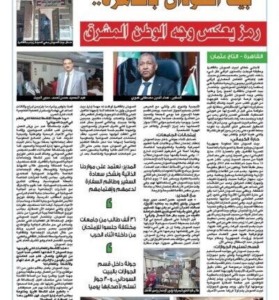 عمل صحفي رائع كروعة صحيفة (أصداء سودانية).. فمجرد زيارة الصحيفة للبيت السوداني بالقاهرة ممثلة في الأستاذ الصحفي (التاج عثمان)، يعكس بجلاء ووضوح مدى إهتمامكم بالرموز والمؤسسات الوطنية خارج حدود السودان، وعكس وجه السودان المشرق.. نتمنى لكم دوام التوفيق والسداد لخدمة البلاد والعباد