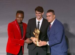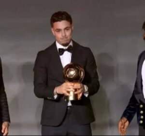 وتسلم حكيمي الجائزة من جياني إنفانتينو، رئيس الاتحاد الدولي لكرة القدم “فيفا”، وباتريس موتسيبي، نظيره في الاتحاد الأفريقي، خلال حفل جوائز “كاف”، الذي أقيم مساء امس بمدينة الرباط المغربية