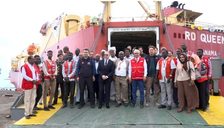 دشن مفوض العون الانسانى سلوى ادم بنية اليوم بميناء بورتسودان سفينة المساعدات الانسانية المشتركة التركية القطرية ، والتى تحتوى على 2676 طنا من المواد الغذائية والايوائية ، بحضور السفير التركى لدى السودان الفاتح يلدز ، والقائم بالاعمال القطرى عبد الله المهندى .