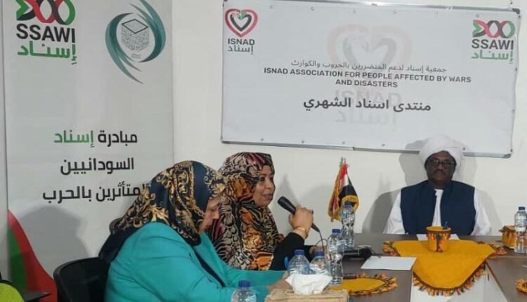واعربت خلال حديثها فى المنتدي الاول لجمعية اسناد الشهري الذي انعقد امس تحت عنوان اثراء الشعر فى اذكاء الحس الوطنى ( وقفات مع ادب شعر الراحلين المقيمين الشاعر الاديب الدبلوماسي محمد المكى إبراهيم والشاعر الاديب هاشم الصديق) واعربت عن املها ان يتحقق الاستقرار والأمن بالسودان ليعود السودانيين للوطن مبينة ان السودان وطن يسع الجميع. وتحدثت عن دور جميعة اسناد الانسانى المتمثل فى الاستجابة العادلة لتوفير الغذاء والكساء والدواء والسكن لبعض الأسر السودانية المتأثرين بالحرب.