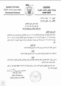 وجاء القرار عملا باحكام الوثيقة الدستورية للفترة الانتقالية واستنادا على مقررات اجتماع مجلس السيادة بتاريخ 8 ابريل 2025م.