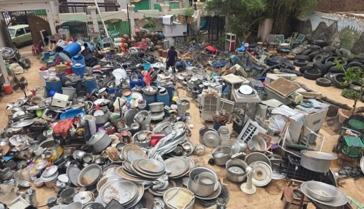 عبر مبادرة شعبية بجزيرة توتي تم جمع، او (حصاد)، منهوبات المواطنين التي إستولت عليها مليشيا الدعم السريع المتمردة أثناء سيطرتها على الجزيرة.. المنهوبات معظمها أدوات منزلية تشمل: (حلل ــ صواني طعام ــ صواني شاي ــ أطباق ــ كبابي ــ ملاعق ــ سكاكين مطبخ ــ حافظات مياه ــ جرادل ــ براميل حفظ المياه ــ أسطوانات غاز ــ مرواح متحركة ــ أفران كهربائية)، تم جمعها بواسطة أفراد المبادرة الشعبية من داخل المنازل التي كان يقيم فيها أفراد المليشيا أثناء سيطرتهم على الجزيرة الخضراء، وتم جمعها في مكان واحد كما تظهر الصورة.