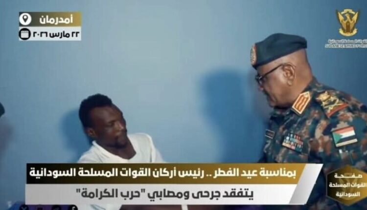 تفقد الفريق أول ركن محمد عثمان الحسين رئيس هيئة الأركان مستشفيات الإدارة العامة للخدمات الطبية (السلاح الطبي) بأمدرمان اليوم، مقدماً التهاني بمناسبة عيد الفطر المبارك لجرحى ومصابي العمليات الحربية.
