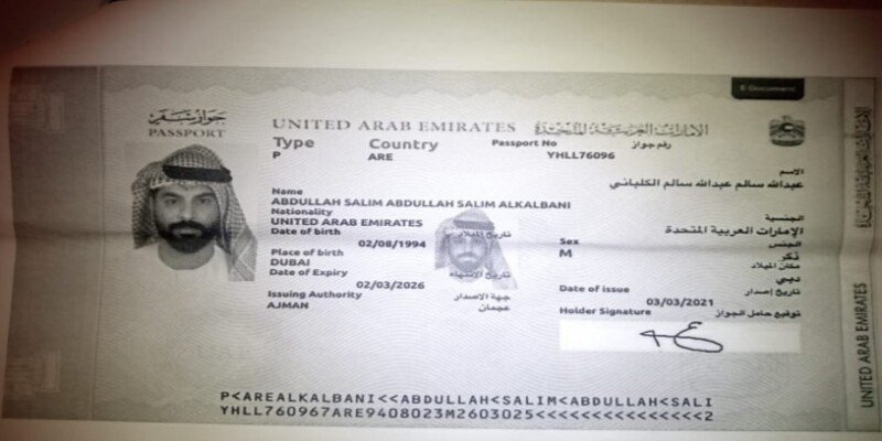 والعثور ايضا على جواز سفر باسم المواطن الاماراتي عبدالله سالم عبدالله الكلباني ،وتم ضبط جواز باسم المواطن الاماراتي خالد عبدالوهاب مصطفى اياز .وكل ما سبق عثر عليه في مركبات قتالية تتبع للدعم السريع في مواقع مختلفة.