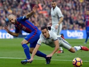 في موسم 2016/17، بدا الكلاسيكو أكثر هدوءًا بعد رحيل مورينيو وجوارديولا، لكن الجدل لم يختفِ كليًا. ففي ملعب كامب نو، أسقط الأرجنتيني خافيير ماسكيرانو لاعب ريال مدريد لوكاس فاسكيز داخل المنطقة، في لقطة واضحة للجميع باستثناء الحكم.