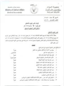 مجلس الوزراء يصدر قرارًا جديداً في يناير 23, 2026 أصدر مجلس الوزراء قراراً بتشكيل المجلس البيطري السوداني وتعيين البروفيسور/ النعمة عبد الخالق رئيساً له، ودكتور هاشم ابوزيد نقد نائبا له شارك FacebookTwitterWhatsApp