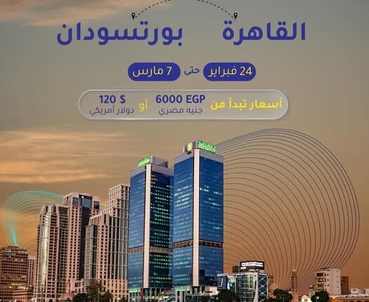 وقالت «سودانير» عبر صفحتها الرسمية بفيسبوك، إنّها تواصل عروضها المميزة بالنسبة لرحلات القاهرة بورتسودان بأسعار تبدأ من 6 آلاف مصري أو 120 دولار أمريكي.