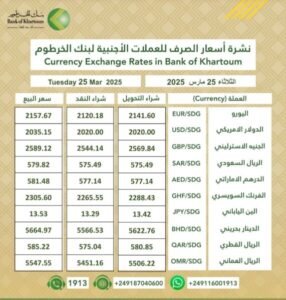 أسعار العملات الأجنبية مقابل الجنيه السوداني اليوم