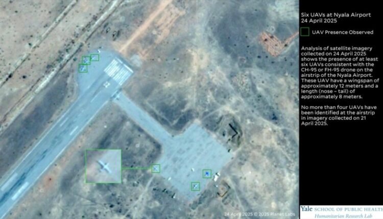 وقال المختبر، إنه “حدد 6 طائرات مسيّرة متطورة بمطار نيالا في صور الأقمار الصناعية اعتبارًا من أول أمس الخميس”.
