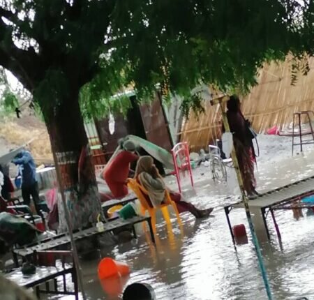 ومن خلال جولتنا فإن مركز العزل لم يتم تجهيزه بالشكل المطلوب ،وتم إدخال المرضى قبل إحضار مقوماته الأساسية ، ولاحظنا أيضا أن المرضى في اليوم الأول لم يجدوا مراحيض داخل المركز ،و إفترشوا العراء ولم يجدوا ما يحميهم من الأمطار التي هطلت بغزارة مرتين خلال أيام مما زاد من سوء الوضع البيئي ،حيث إختلطت مياه الأمطار بفضلات المرضى الأمر الذي دعا الكادر الطبي العامل لعقد إجتماع أكدوا فيه إستحالة إستمرار العمل داخل العزل بسبب عدم ملاءمته وإفتقاره لمقومات أساسية مثل سوء الأرضية التي تستحيل معها عمليتي النظافة و التعقيم ،إلى جانب إزدحام المرضى لدرجة عدم وجود مساحة للتحرك بينهم وعدم وجود إضاءة كافية خاصة بالناحية الشرقية إلى جانب عدم وجود حمامات ،فالموقع أصلا به حمام وحيد وغير مستخدم لأشكالات تتعلق بالصرف الصحي ،وتم إستجلاب حمامين متحركين تم إغلاقهما بعد ساعات بسبب سوء الاستخدام وعدم وجود مياه ،ويقضي غالبية المرضى حاجتهم في العراء شرق المركز المفتوح علي منازل سكنية ،فيما يضطر مرافقيهم لتفريغ المواعين البلاستيكية في نفس المكان وآخرين يحملونها في أكياس نايلون.