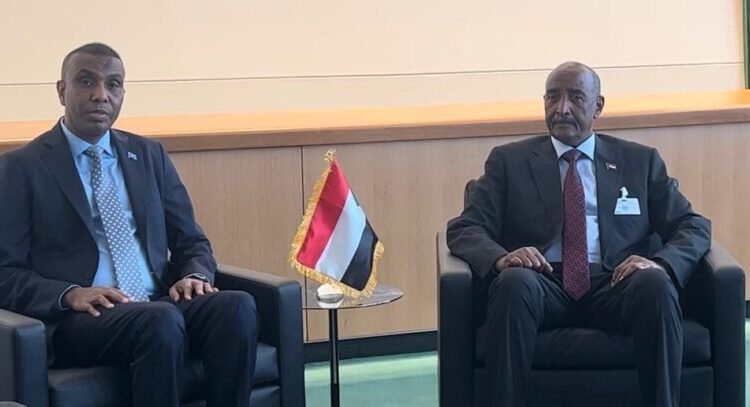 استقبل رئيس مجلس السيادة القائد العام للقوات المسلحة الفريق أول ركن عبدالفتاح البرهان اليوم حمزة عبدي بري رئيس وزراء الصومال على هامش أعمال إجتماعات الدورة ال(٧٩) للجمعية العامة للأمم المتحدة بنيويورك.