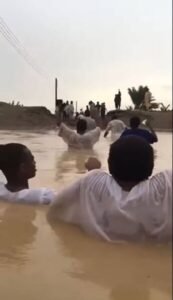 مشاهد مؤثرة تظهر المواطنين السودانيين وهم يسيرون وسط مياه الفيضانات التي وصلت إلى أكتافهم، وكأنهم يسبحون في بحر من المياه الممزوجة بالطين. بعض المقاطع، تظهر المياه تغمر طرقات وحدة صحية، وفي مشهد آخر، يحاول الأهالي رفع منسوب الحواجز بجوالات من الرمال لإنقاذ الأرض الزراعية من المياه المتزايدة .