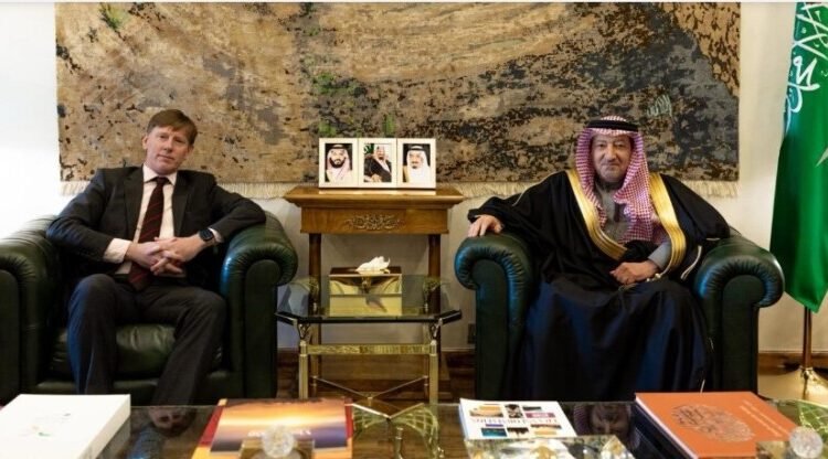 حضر الاستقبال، سفير المملكة المتحدة المعيّن لدى المملكة ستيفن تشارلز هيتشن.